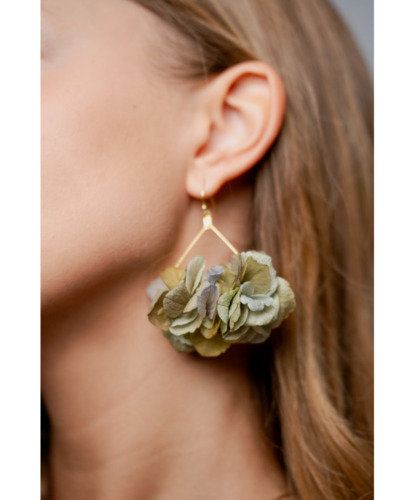 Beautiful slopes of hydrangea bouquet in various colors. These vibrant flower earrings preserved hydrangea leaf are from the new Menorca Colors collection.