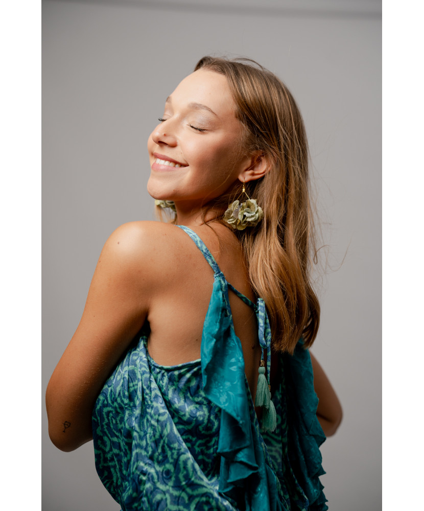 Vibrant and beautiful flower earrings preserved from hydrangea in various colors and designed on short hook, are the last earrings of the new "Menorca Colors" collection.
