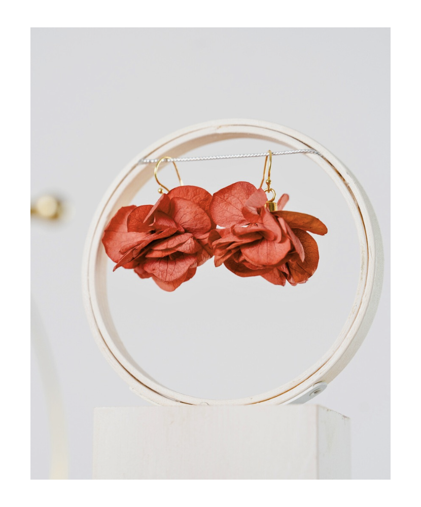 Our preserved hydrangea flower earrings are truly unique, elaborated with preserved natural flowers, known for its stability and lasting freshness.