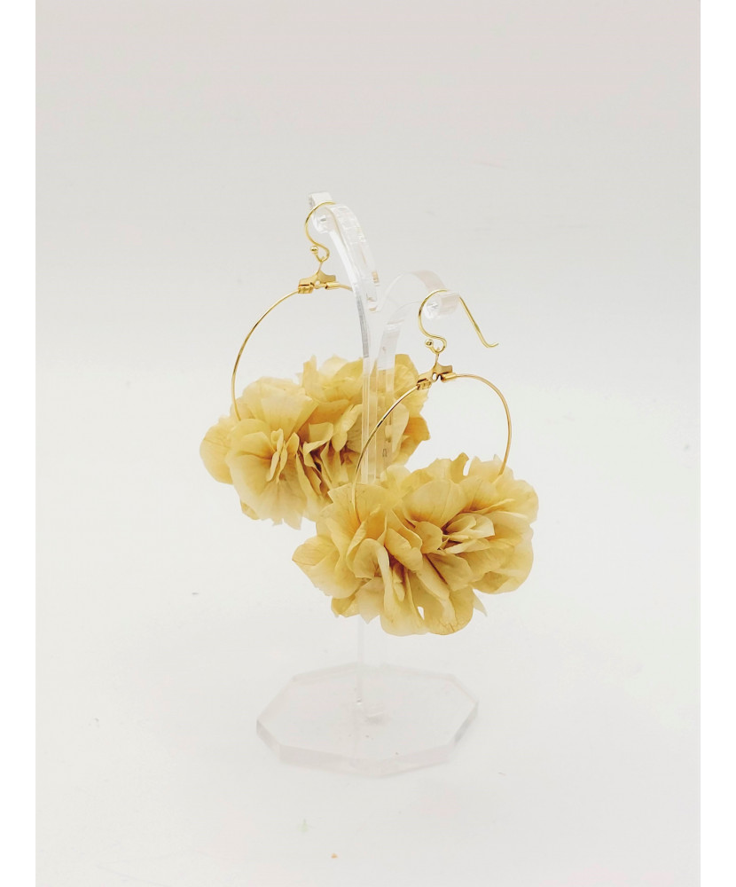 Vibrant and beautiful flower earrings preserved from hydrangea in various colors and designed on short hook, are the last earrings of the new "Menorca Colors" collection.