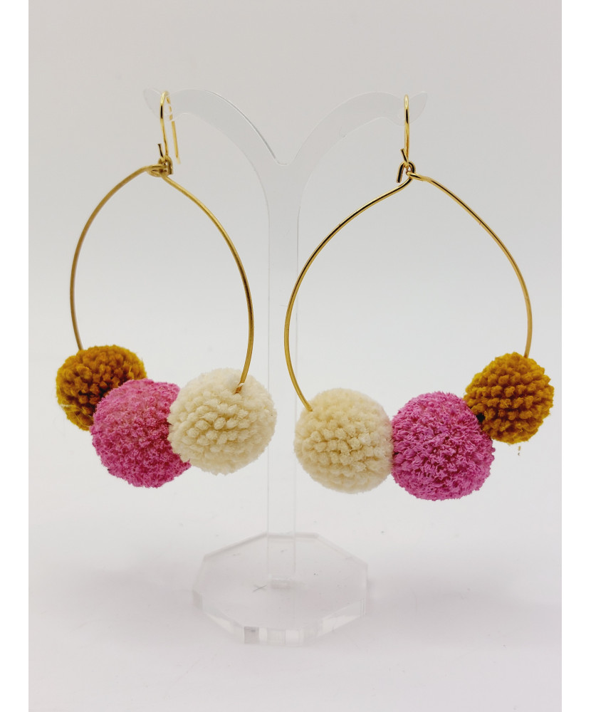We present our earrings of crasped in pink. However, you can also choose among other flowers such as Gypsophila (paniculata), Broom, Ruscus, Eucalyptus, Yellow, Hill Flower (Cardo), Lavender, Wheat, Hydrangeas ... Colors can be customized according to your taste, Whenever they are available.