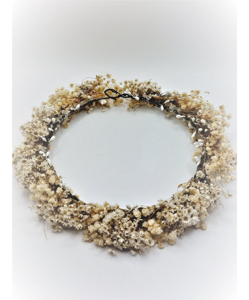All of our preserved flower crowns are unique and exclusive, elaborated with preserved natural flowers, also known as stabilized flowers. This preservation process is carried out by selecting specific flowers collected at the time of maximum splendor.