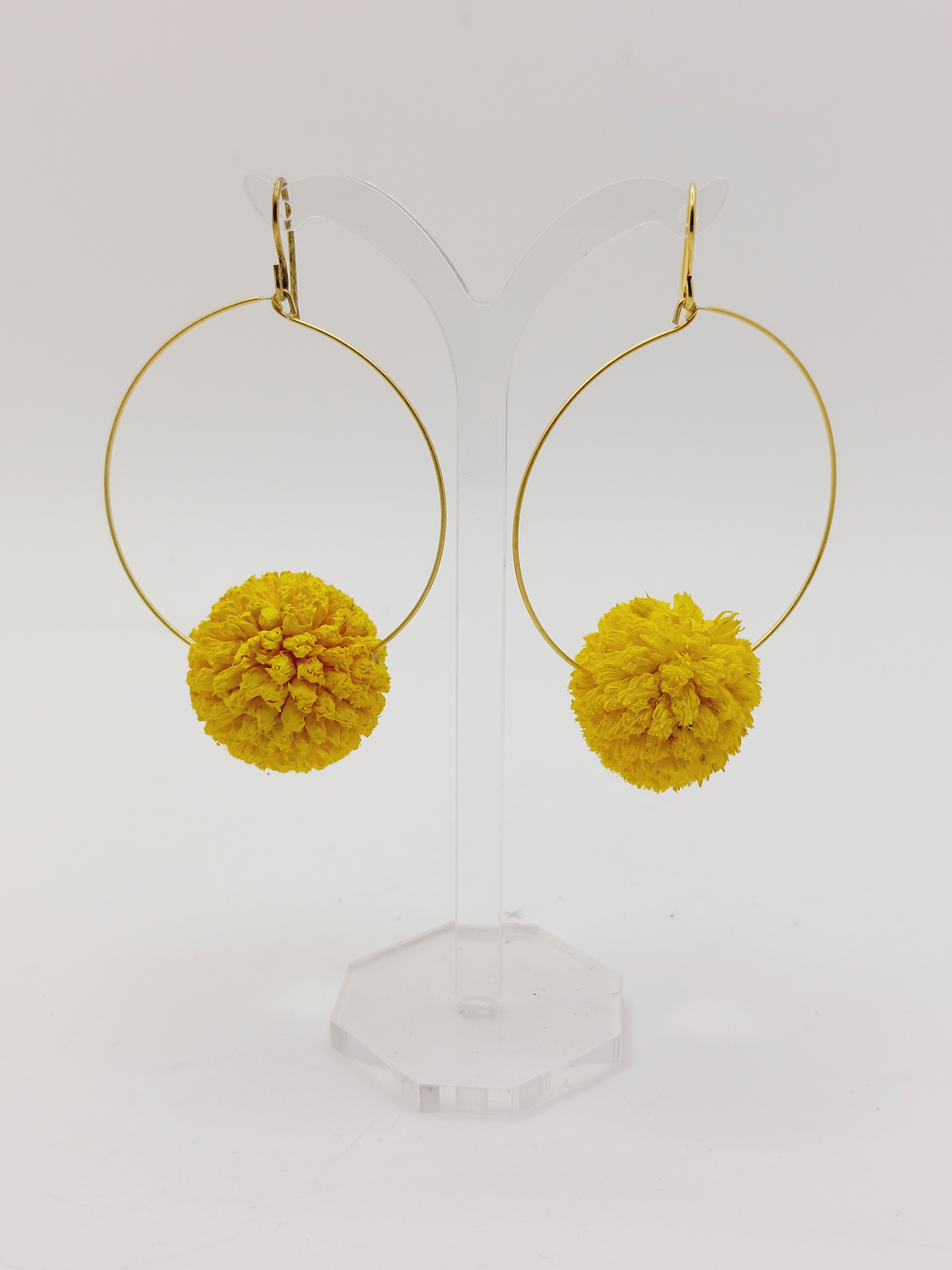 Estos pendientes de flor de Craspedia preservada son verdaderamente únicos, ya que están confeccionados con flores naturales preservadas, también conocidas como flores estabilizadas. Este proceso de preservación implica una cuidadosa selección de flores recolectadas en su momento de máximo esplendor. Tras la liofilización (extracción de su savia), se introduce la nueva savia para que la flor conserve su frescura y aspecto natural durante muchos años. No requieren ningún mantenimiento especial, solo es necesario mantenerlos en un ambiente neutro.