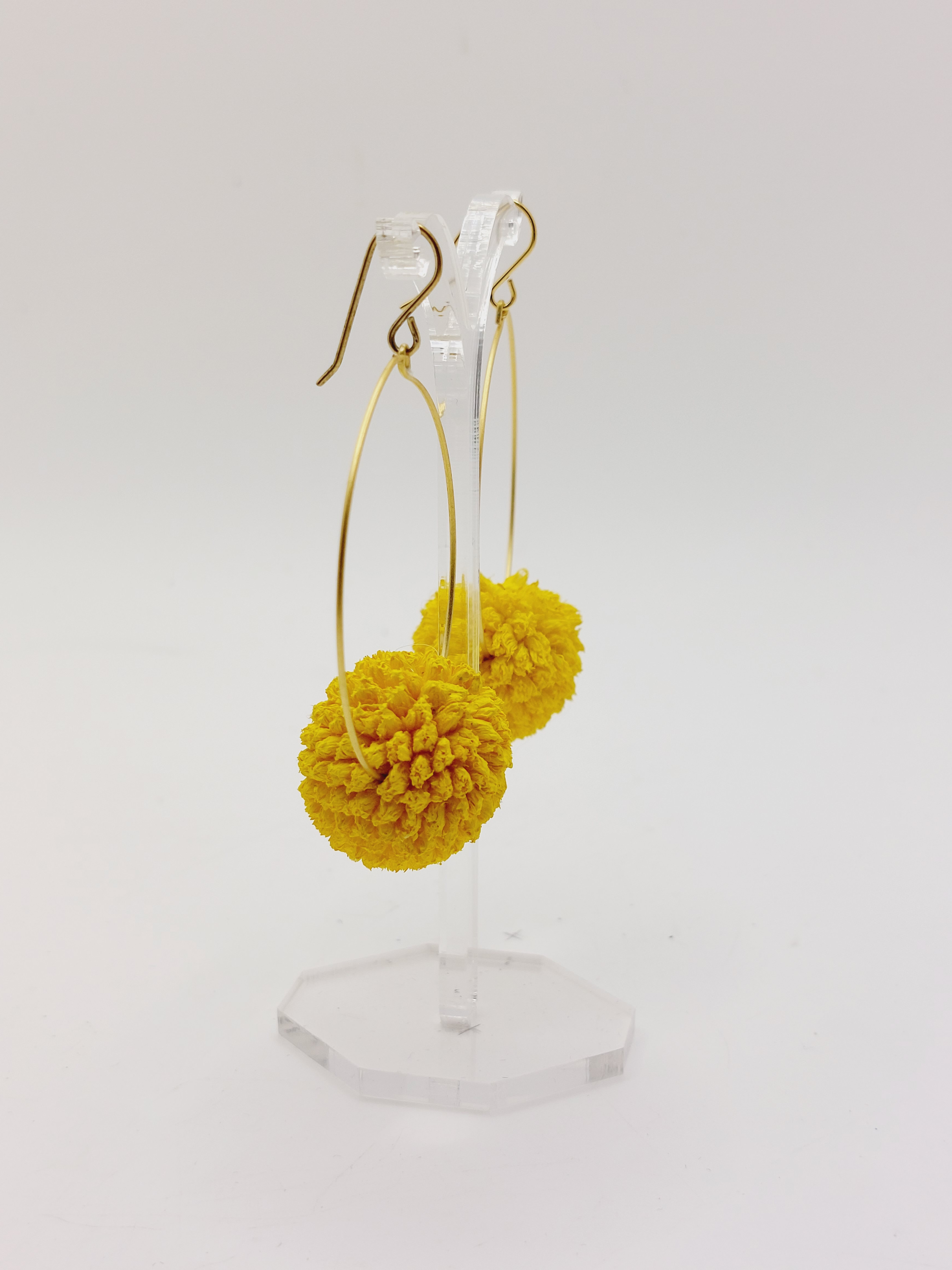 Descubre la Elegancia Floral con los Pendientes de Flor de Craspedia Amarilla