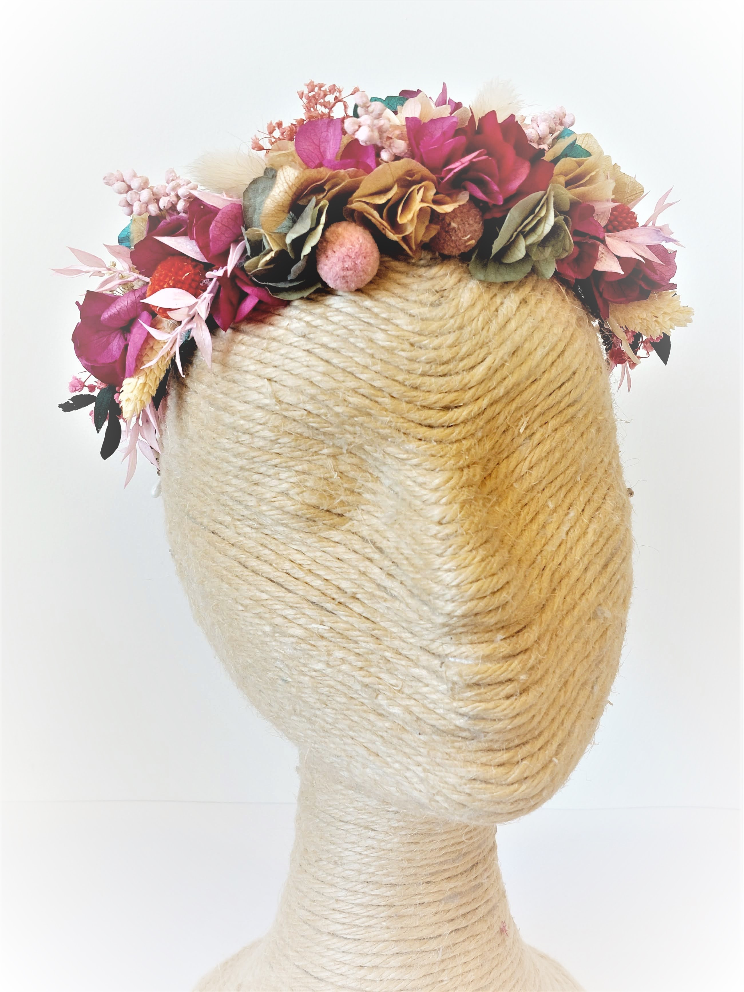 Todas nuestras coronas de flor preservada son únicas y exclusivas, confeccionadas con flores naturales preservadas, también conocidas como flores estabilizadas. Este proceso de preservación se realiza seleccionando flores específicas recolectadas en su momento de máximo esplendor.