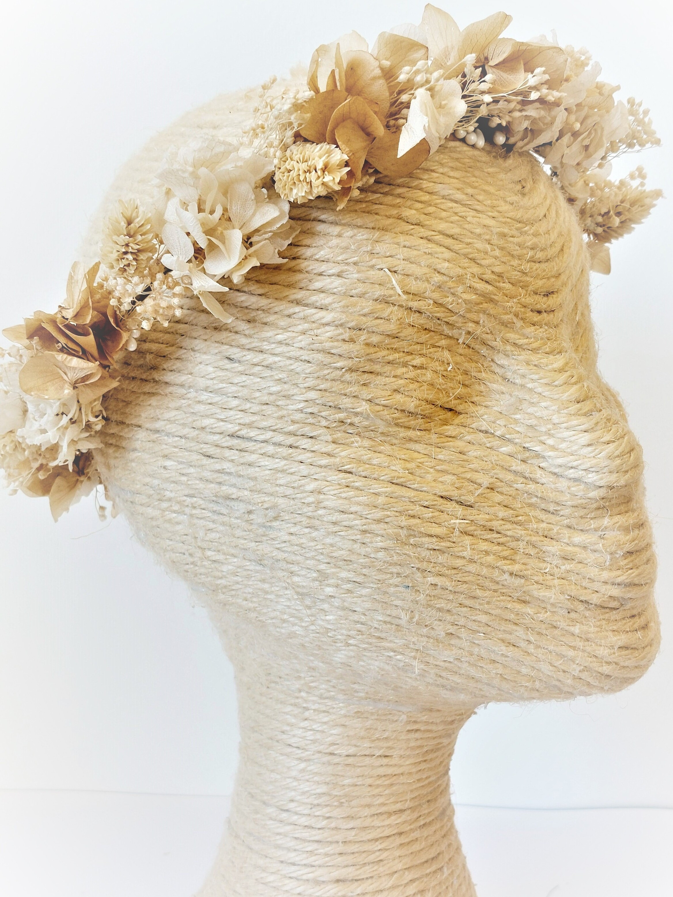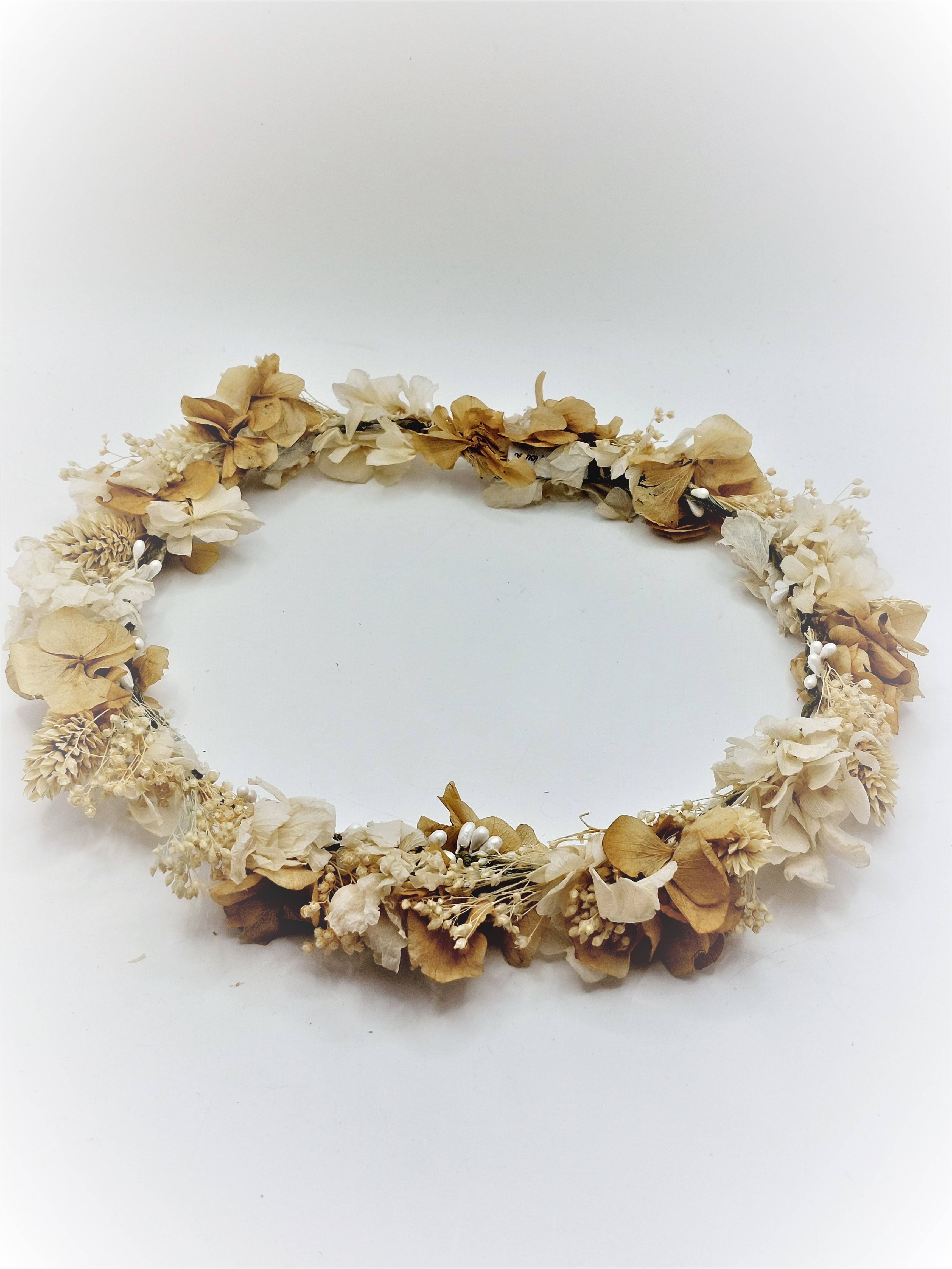 Todas nuestras coronas de flores preservadas son únicas y exclusivas, elaboradas con flores naturales preservadas, también conocidas como flores estabilizadas. Este proceso de preservación se lleva a cabo seleccionando flores específicas recolectadas en su momento de máximo esplendor.